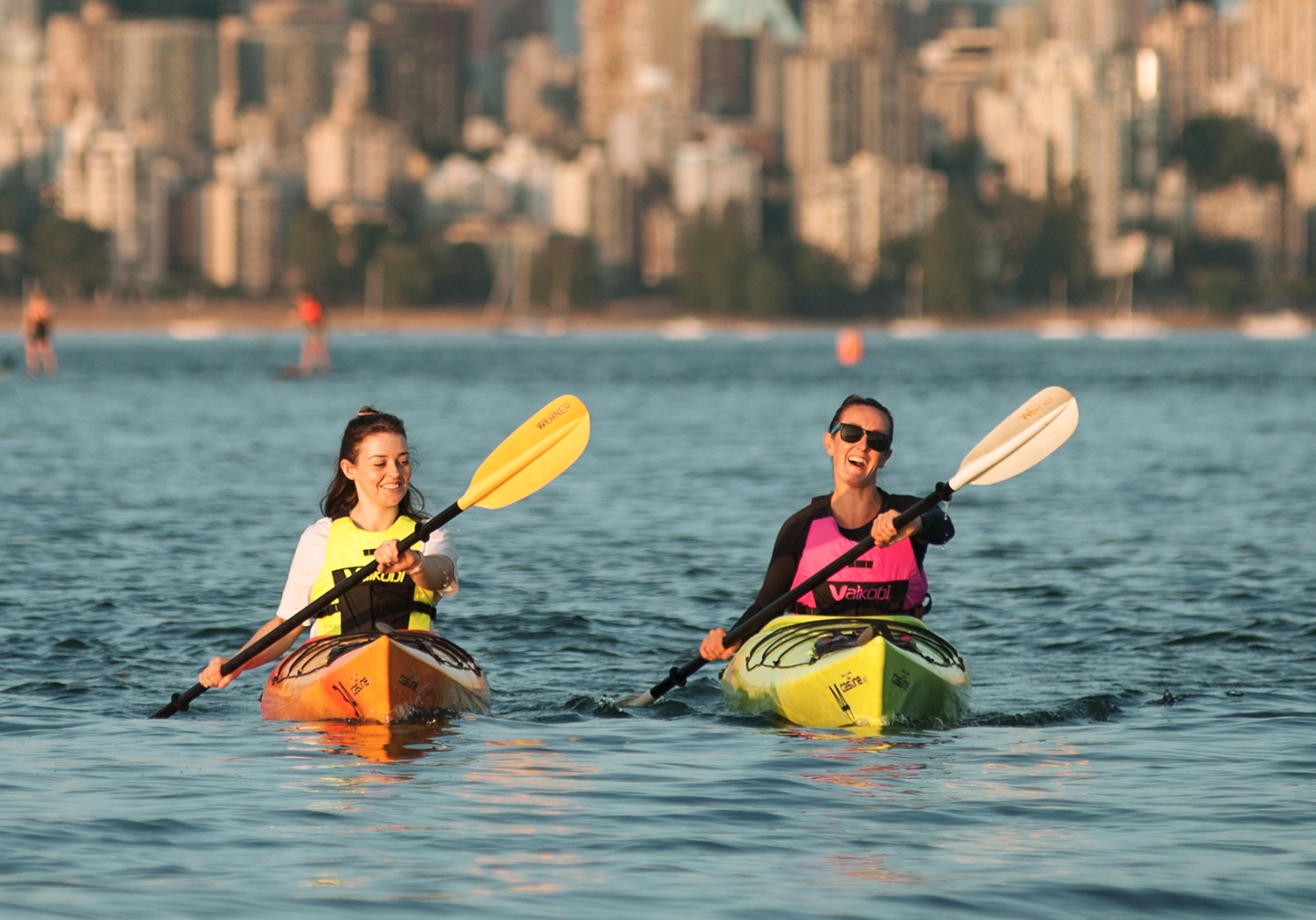 Paddle along Vancouver’s stunning coastline with views of the North Shore mountains, sandy beaches, and the city skyline across English Bay.